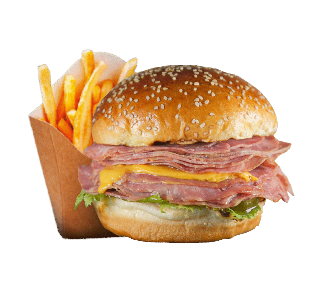 Smoke Beef Burger İçindekiler:Kömür Ateşinde Tütsülenmiş Dana Füme, Özel Etçi Mehmet Sosu, Kuru Soğan, Cheddar Peyniri, Turşu, Yeşillik, ve Patates Kızartması ile