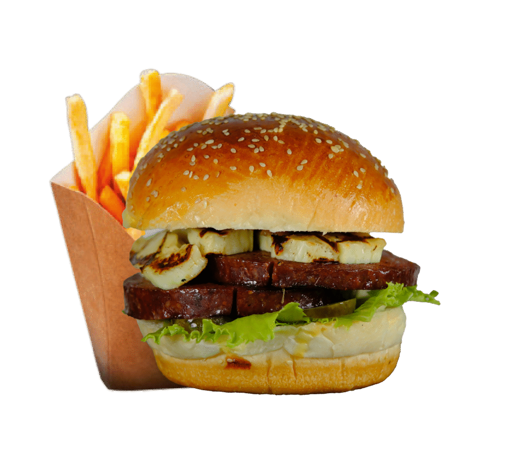 Sucuk Hellim Burger İçindekiler:Dana sucuk, hellim peyniri, karamelize soğan, turşu,yeşillik, etçi mehmet özel sos ve patates kızartması ile.